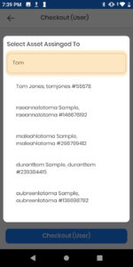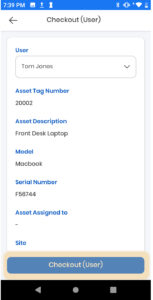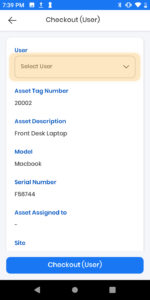 2) Scan the asset tag of the item to be checked out.