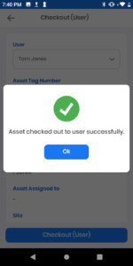 7) The asset is now checked out to the user.